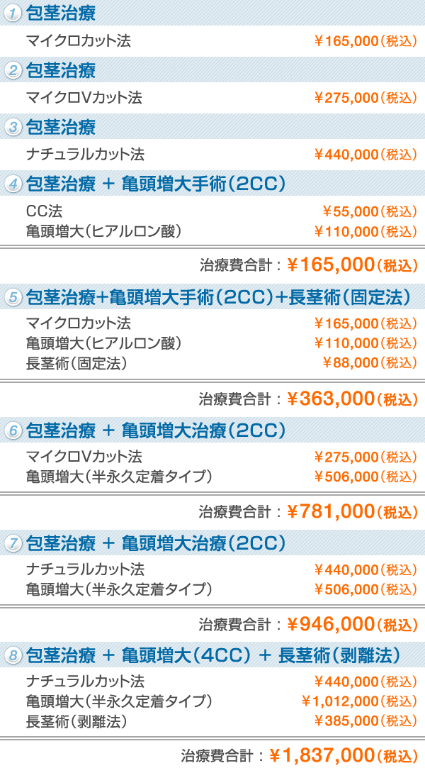 | 一部修正手術 | ¥55,000(税込)~ ¥165,000(税込) |